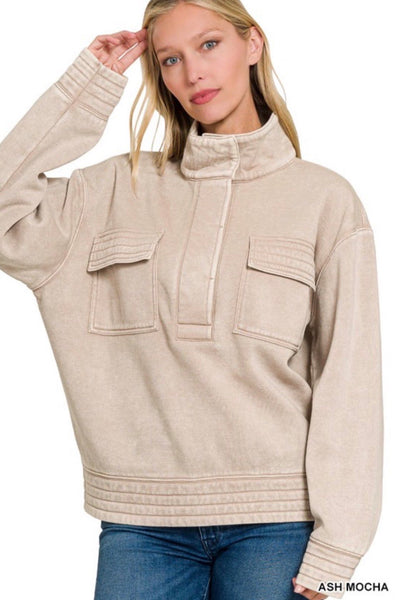Acid Wash Half Snap Top
