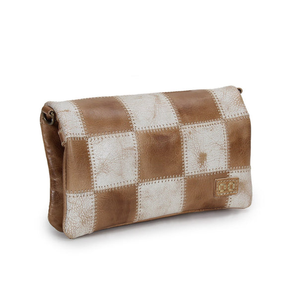 Chrome and formaldehyde free, vegetable tanned leather Handmade by Real People 2 Inner zippered pockets, 1 outer zipper pocket, studded leather zipper pulls Mesh Id slot, place for credit cards, closes with strong magnet Comes with two removable leather straps: clutch and crossbody 5 inch H, 8 inch W, with 25 inch drop