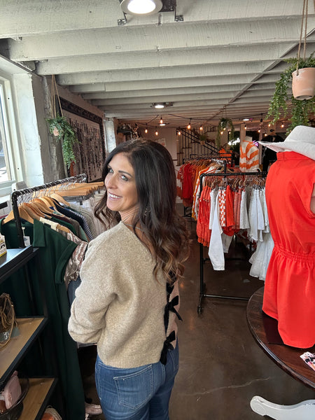 BOAT NECKLINE LONG SLEEVES DROP SHOULDER BACK BOW TIE DETAIL VELVET BOW TIE BACK CUT-OUT DETAIL SOLID CONTRAST DETAIL NOT LINED WOOL BLEND 65%POLYESTER 13%ACRYLIC 13%NYLON 6%WOOL 3%SPANDEX