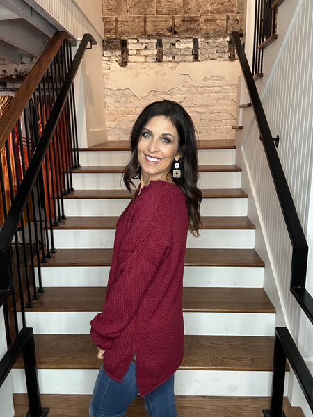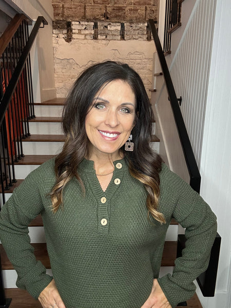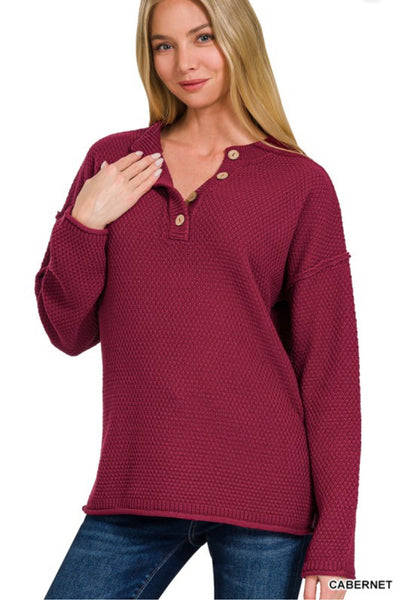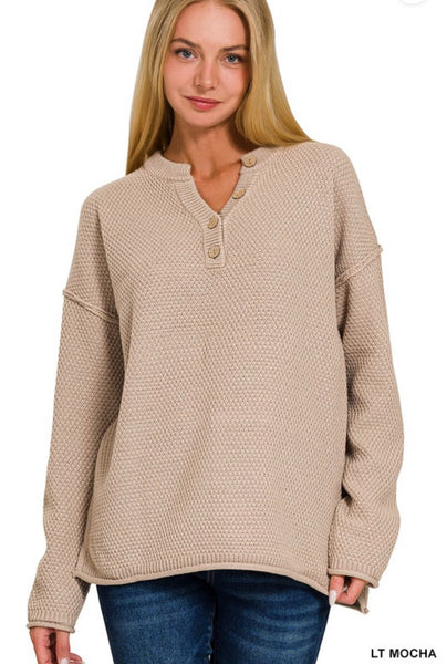 BUTTONS HENLEY NECKLINE BASIC SWEATER - MIDWEIGHT 100% ACRYLIC